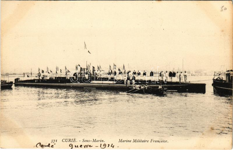 Leírás: Curie, Sous Marin, Marine Militaire Francaise / Curie (később osztrák-magyar S.M. U-XIV) francia tengeralattjáró / Curie French submarine (later K.u.k. Kriegsmarine Unterseeboot 14)