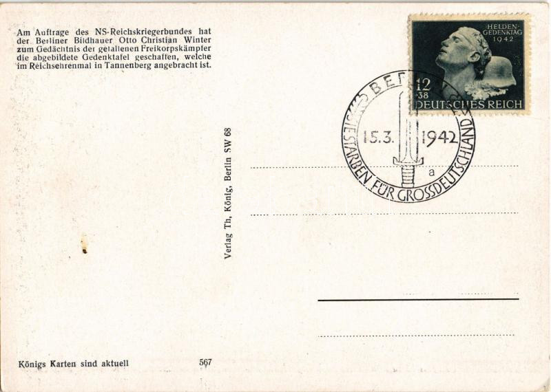 Gedenktafel zum Gedächtnis der gefallenen Freikorpskämpfer / Német második világháborús náci katonai hősi emlékmű Tannenberg-ben, Lengyelországban / WWI German Nazi military heroes monument in Stebark (Poland) + So. Stpl (EK)