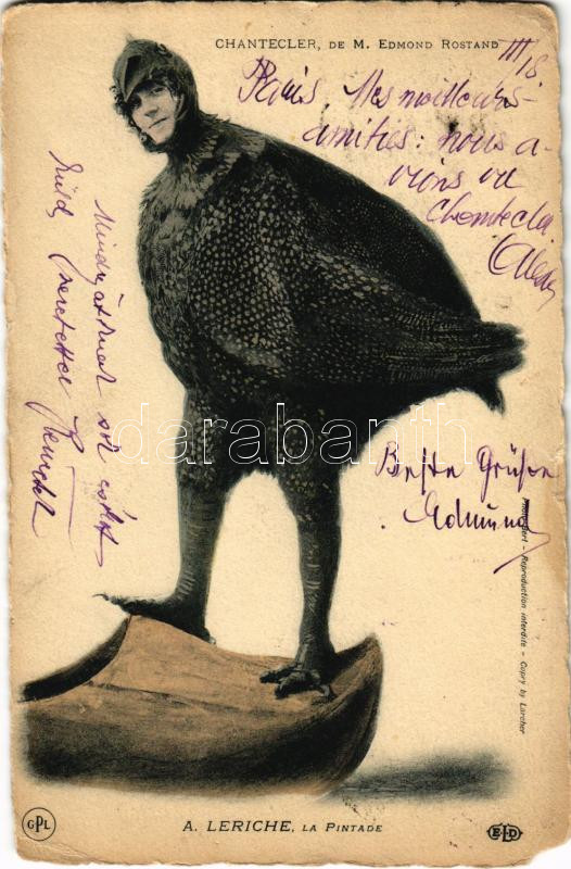 1910 Chantecler de M. Edmond Rostand: A. Leriche, La Pintade (EK) https://www.darabanth.com/hu/459-Gyorsarveres/459.0/Kepeslapok/Szinesz~1500075/1910-Chantecler-de-M-Edmond-Rostand-A-Leriche-La-Pintade-EK~II3075365