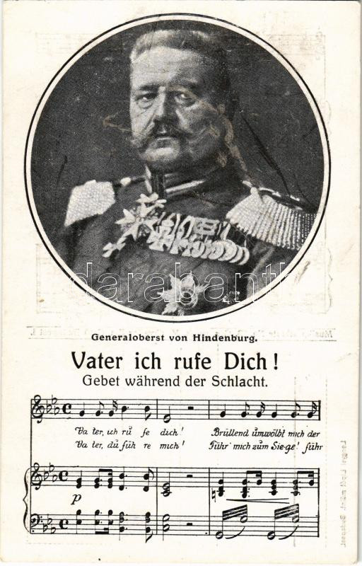 Generaloberst von Hindenburg. Vater ich rufe Dich! Musikpostkarte No. ... https://www.darabanth.com/hu/459-Gyorsarveres/459.0/Kepeslapok/Uralkodo-Politikus~1500082/Generaloberst-von-Hindenburg-Vater-ich-rufe-Dich-Musikpostkarte-No-23-Em-Gero-Budapest~II3074942