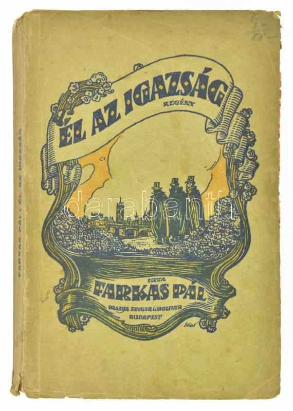 Farkas Pál: Él az igazság. Regény az emigráció korából. Bp., 1921, Singer és Wolfner, 224 p. Első kiadás. Kiadói illusztrált papírkötés, kissé sérült, foltos borítóval, helyenként kissé sérült, foltos, a fűzéstől elváló lapokkal. A címlapon Meixner Emil (1892-1976) földbirtokos, gazdálkodó, országgyűlési képviselő névbejegyzésével.