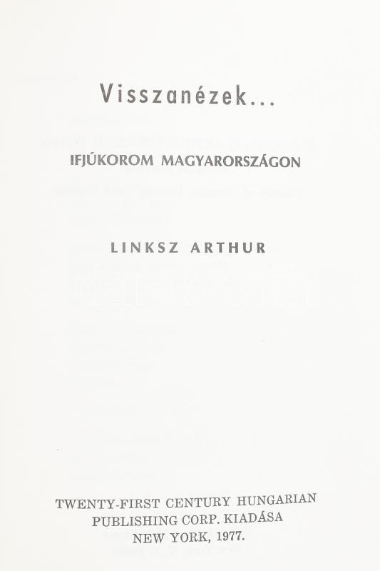 Linksz Arthur: Visszanézek. Ifjúkorom Magyarországon. New York, 1976, Twenty-First Century Hungarian Publishing Corp., egészvászon kötés. Emigráns kiadás. Néhány lapon jelöléssel.