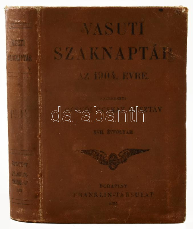 Ocskó Ocskay Gusztáv: Vasuti szaknaptár az 1904. évre. XVII. évf. Bp.,... https://www.darabanth.com/hu/459-Gyorsarveres/459.0/Konyvek/Konyvek-Vasut-temaju-konyvek~2000029/Ocsko-Ocskay-Gusztav-Vasuti-szaknaptar-az-1904-evre-XVII-evf-Bp-1904-Franklin-Kiadoi~II3072146