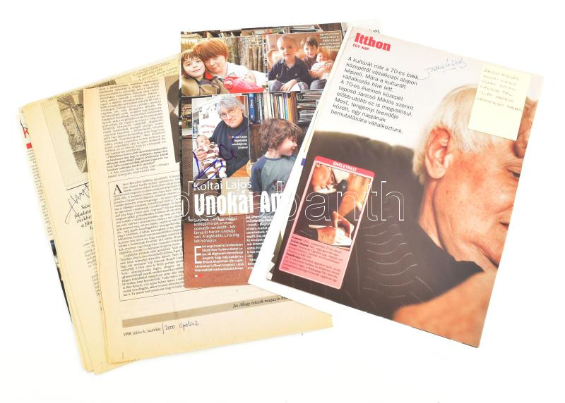 Leírás: Jancsó Miklós, Koltai Lajos, Szabó István, Sándor Pál, Illés György és Grunwalsky Ferenc aláírása újságlapokon