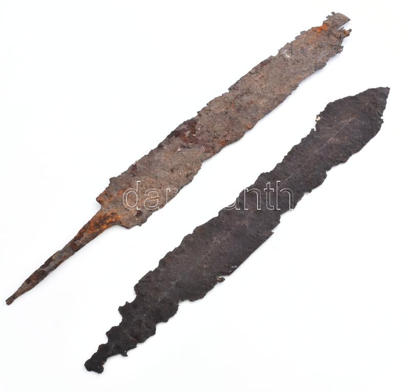 Leírás: 2 darab kardpenge / tőrpenge, cca középkor, képeken látható rossz állapotban, h: 42-48 cm