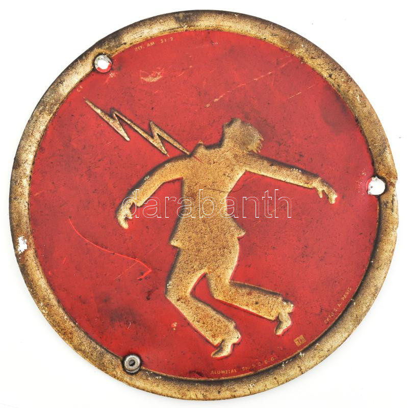 Áramütésre figyelmeztető fém tábla, kopásnyomokkal, d: 20 cm https://www.darabanth.com/hu/459-Gyorsarveres/459.0/Mutargy-papirregiseg-egyeb/Bolhapiac~1000014/Aramutesre-figyelmezteto-fem-tabla-kopasnyomokkal-d-20-cm~II3069869