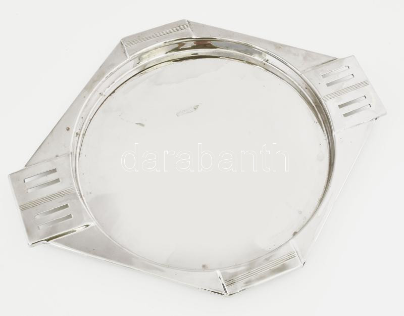 Leírás: Art deco nikkelezett fém tálca, jelzés nélkül, néhol kopott, 39,5x32,5 cm