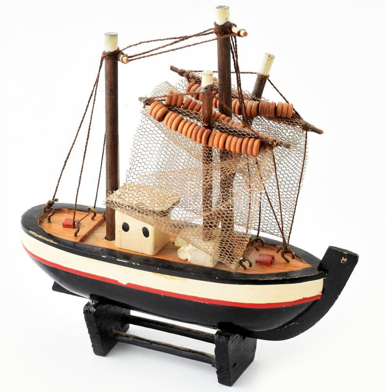 Leírás: Fa vitorláshajó asztali dísz, kopásnyomokkal, 14×15 cm