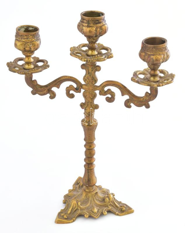 Háromágú gyertyatartó. Bronz, m: 26,5 cm https://www.darabanth.com/hu/459-Gyorsarveres/459.0/Mutargy-papirregiseg-egyeb/Bolhapiac~1000014/Haromagu-gyertyatarto-Bronz-m-26-5-cm~II3073082