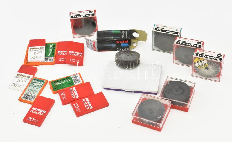 Írógép tétel: zömmel Kores, Pelikan, szalagok, hibajavítók, stb. https://www.darabanth.com/hu/459-Gyorsarveres/459.0/Mutargy-papirregiseg-egyeb/Bolhapiac~1000014/Irogep-tetel-zommel-Kores-Pelikan-szalagok-hibajavitok-stb~II3076225