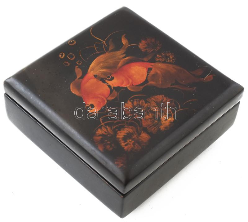 Leírás: Keleti lakkozott doboz aranyhalas mintával, 10x10x55 cm