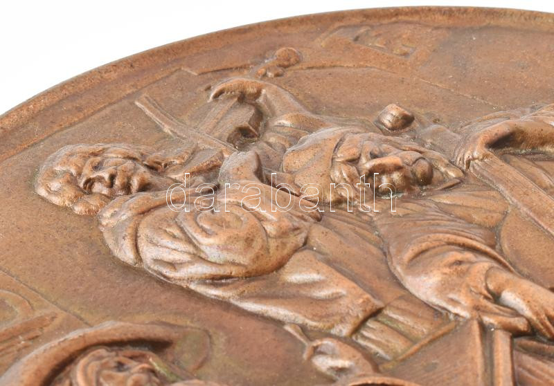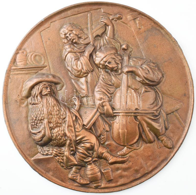Zenészek. Bronzírozott alumínium dísztál, kopással, d: 28,5 cm https://www.darabanth.com/hu/459-Gyorsarveres/459.0/Mutargy-papirregiseg-egyeb/Bolhapiac~1000014/Zeneszek-Bronzirozott-aluminium-disztal-kopassal-d-28-5-cm~II3070099