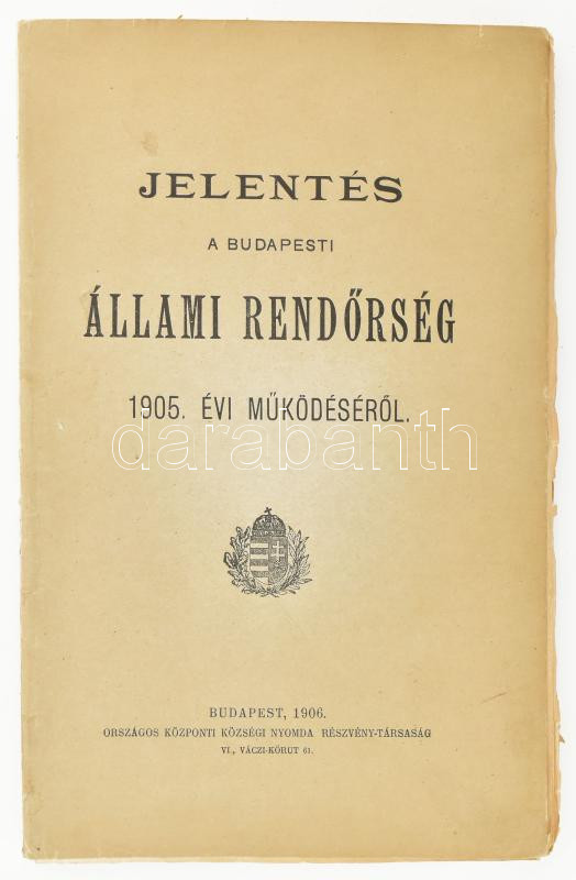 Bp., 190... https://www.darabanth.com/hu/459-Gyorsarveres/459.0/Mutargy-papirregiseg-egyeb/Budapest-150~2000002/Jelentes-a-budapesti-Allami-Rendorseg-1905-evi-mukodeserolBp-1906-Rado-Izor-288-p-Kiado-~II3078754