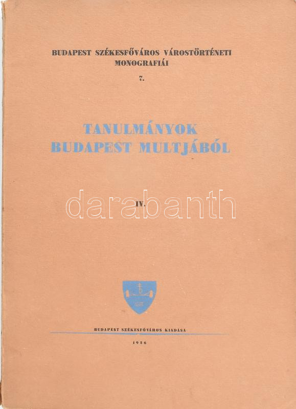Tanulmányok Budapest multjából IV. Szerk.: Némethy Károly. Budapest Székesfőváros Várostörténeti Monográfiái 7. Bp., 1936, Budapest Székesfőváros, 8+210 p.+XXXVII t. Kiadói papírkötés, a gerincen kis szakadással, ceruzás bejegyzésekkel.