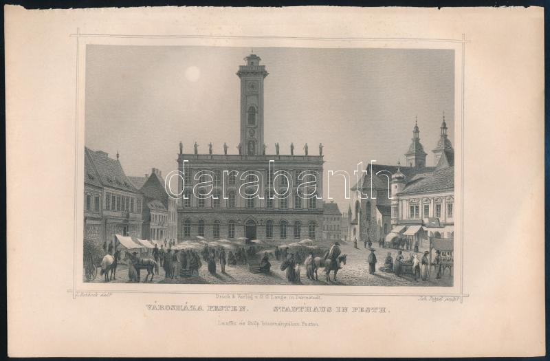 Leírás: cca 1860 A városháza Pesten. Ludwig Rohbock (1820-1883): acélmetszet, jelzett a dúcon, 13x18 cm, teljes: 16x24 cm