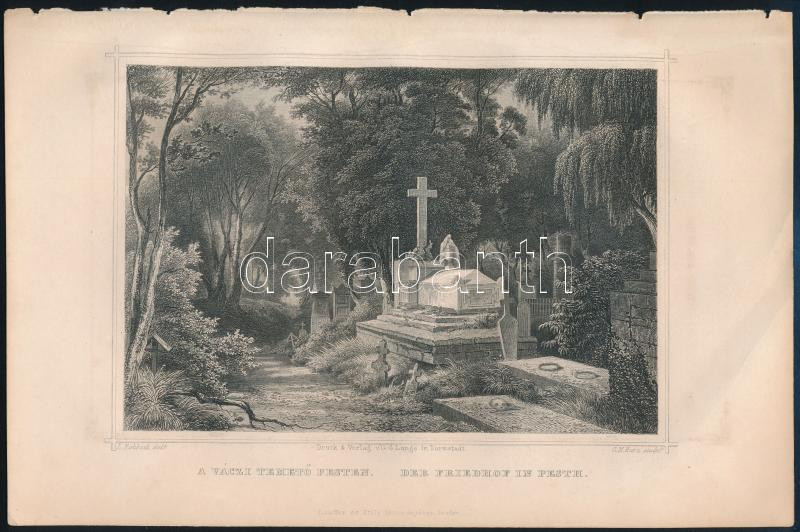 Leírás: cca 1860 Ludwig Rohbock (1820-1883): A váci temető Pesten, sculp: G.M.Kura, acélmetszet, jelzett a dúcon, 13x18 cm, teljes: 16x24 cm