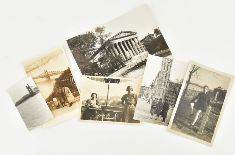Leírás: cca 1930-1970 Budapest, Ferenc József-híd, Mátyás-templom, Gellért tér a szovjet emlékművel, stb., 6 db fotó, 9x5 cm és 17x12 cm között