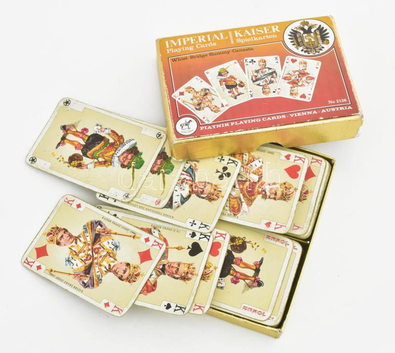 Leírás: Piatnik römi kártya osztrák uralkodók képeivel, eredeti dobozában, kissé kopottas állapotban
