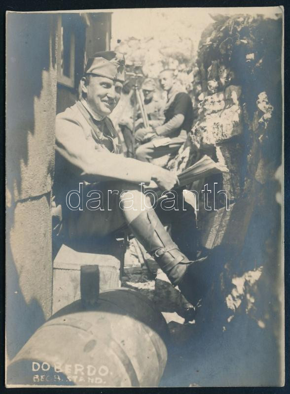 1916 Magyar katonák megfigyelő állásban Doberdonál, középen állványon ... https://www.darabanth.com/hu/459-Gyorsarveres/459.0/Mutargy-papirregiseg-egyeb/Militaria~2000009/1916-Magyar-katonak-megfigyelo-allasban-Doberdonal-kozepen-allvanyon-tavcsovel-feliratozott-foto~II3076885