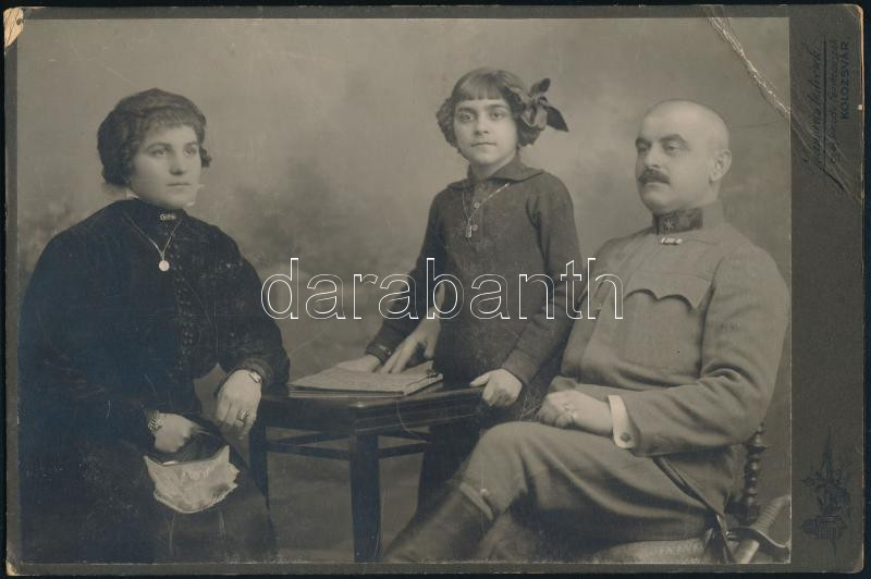 1916 Seletin (Selyatyn), Bukovina, magyar katonatiszt és családjának dedikált fotója, keményhátú kabinetfotó a Joánovics testvérek kolozsvári műterméből, sarka sérült, 23,5x16 cm
