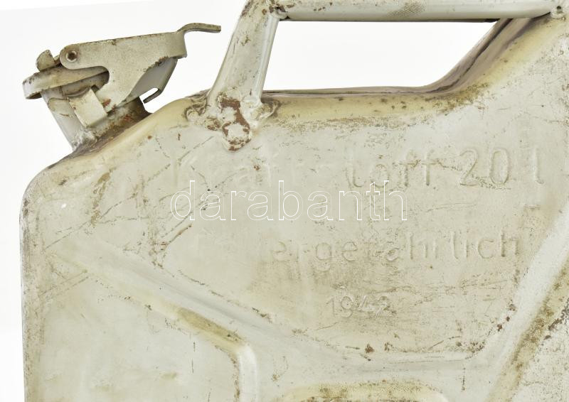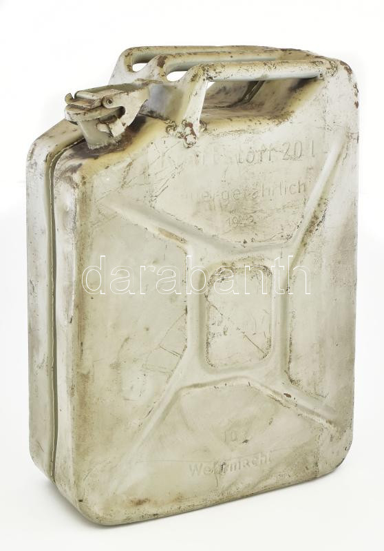 1942 Wehrmacht fém benzines kanna. Jelzett,. 20l, kopott, m: 47 cm https://www.darabanth.com/hu/459-Gyorsarveres/459.0/Mutargy-papirregiseg-egyeb/Militaria~2000009/1942-Wehrmacht-fem-benzines-kanna-Jelzett-20l-kopott-m-47-cm~II3075851