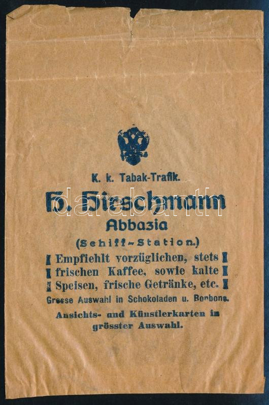 Leírás: K. k. Tabak-Trafik H. Hirschmann Abbazia reklám papírtasak, 15x10 cm