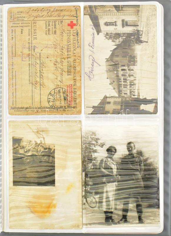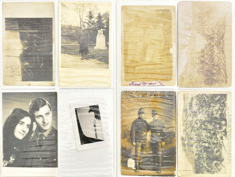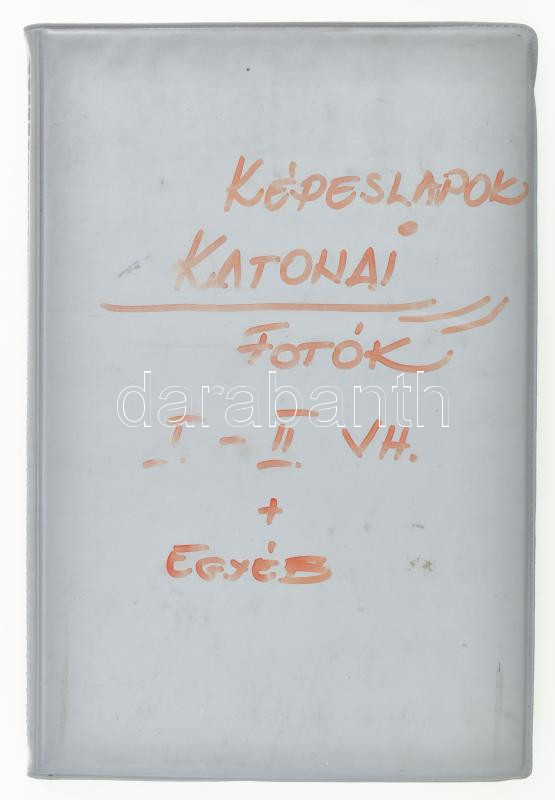 Vegyes katonai fotók és képeslapok, az I. világháborútól a szocializmusig, közte megírt tábori posta levelezőlapok is. Összesen 99 db, vegyes méretben és állapotban, albumban.