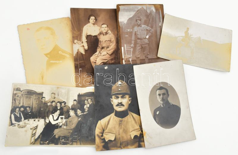 Leírás: cca 1900-1918 7 db katonai fotó, vegyes állapotban, 14x9 cm körül