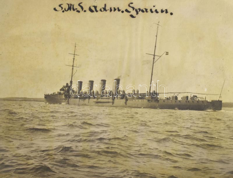 cca 1905 Az S.M.S. Admiral Spaun osztrák-magyar gyorscirkáló hadihajó / Portside view of S.M.S. Admiral Spaun sailing along the Dalmatian coast. 10x7,5 cm