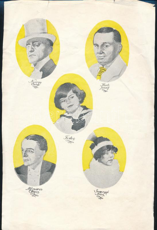 Leírás: 1917/18 évadbeli Corvin filmek. reklám nyomtatvány, egyik oldalon a filmekkel, másikon a főszereplő színészek képeivel 20x30 cm Kis gyűrődéssel