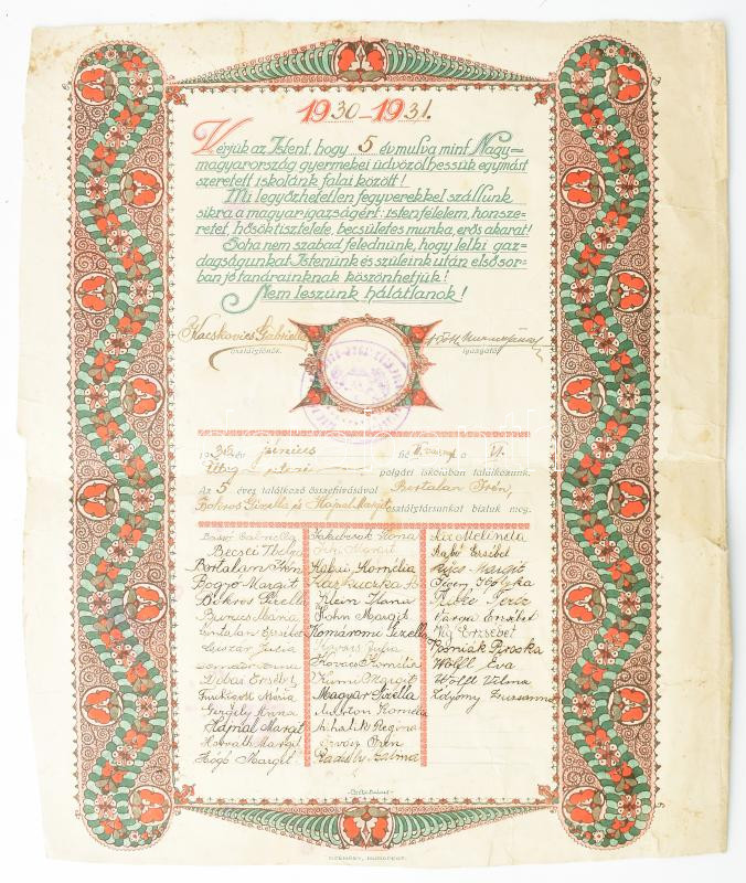 Leírás: 1931 Irredenta osztálytalálkozói fogadalom nyomtatvány
