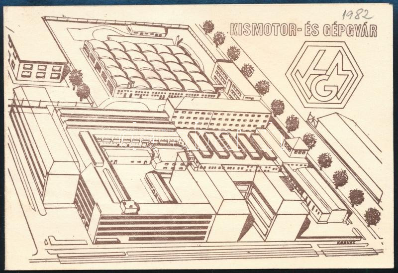 Leírás: 1982 Kismotor- és Gépgyár (korábban Csonka János Gépgyár) grafikus meghívó / borító (belül üres), szign.: Krausz, 15,5x10,5 cm