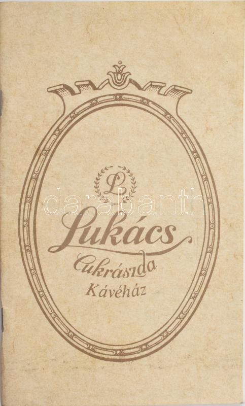 Lukács Kávéház, Cukrászda étlapja https://www.darabanth.com/hu/459-Gyorsarveres/459.0/Mutargy-papirregiseg-egyeb/Nyomtatvanyok~2000036/Lukacs-Kavehaz-Cukraszda-etlapja~II3073658