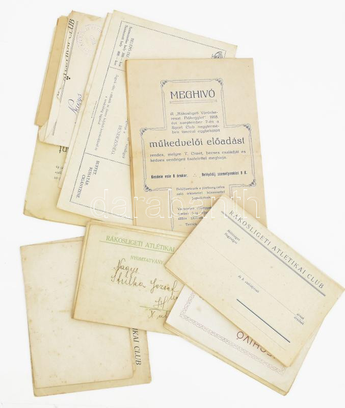 Leírás: cca 1920-1940 18 db meghívó a Rákosligeti Atlétikai Klub eseményeire