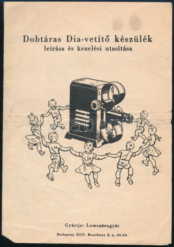 cca 1950 Lemezárugyár dobtáras diavetítő készülék leírása és kezelési ... https://www.darabanth.com/hu/459-Gyorsarveres/459.0/Mutargy-papirregiseg-egyeb/Nyomtatvanyok~2000036/cca-1950-Lemezarugyar-dobtaras-diavetito-keszulek-leirasa-es-kezelesi-utasitasa-kisse-viseltes~II3074883