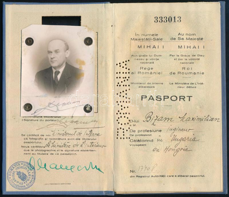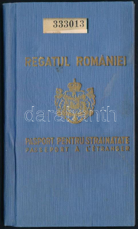 1941 Román fényképes útlevél / Kingdom of Romania, passport https://www.darabanth.com/hu/459-Gyorsarveres/459.0/Mutargy-papirregiseg-egyeb/Okmanyok~1000020/1941-Roman-fenykepes-utlevel-Kingdom-of-Romania-passport~II3073907