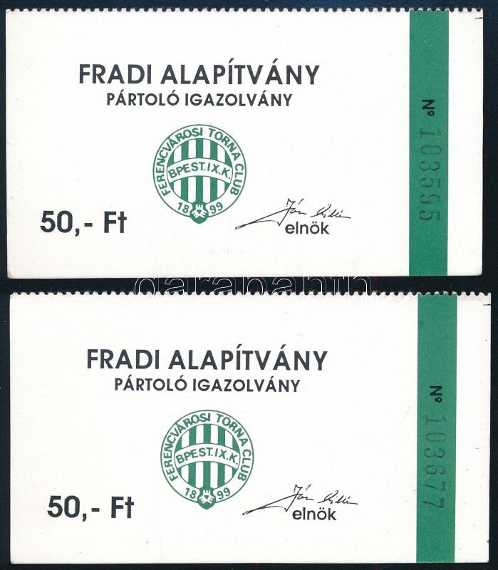 Leírás: cca 1990 2 db FTC Alapítvány pártoló igazolvány