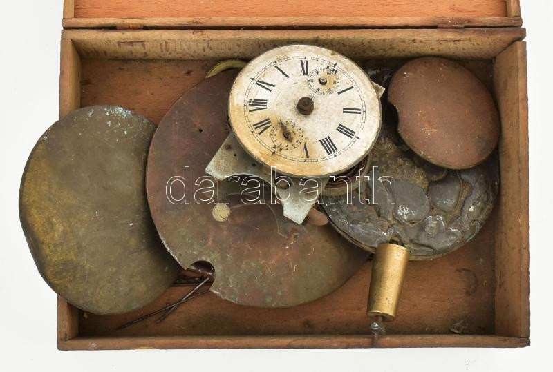 Leírás: Antik Junghans óraszerkezet + óra alkatrészek, vegyes állapotban