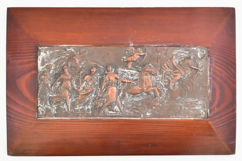 Leírás: Giuseppe Gamboni után: Mitológiai jelenet. Bronz relief kép, fakeretben, jelzett, 8x19 cm, kerettel 17x26,5 cm