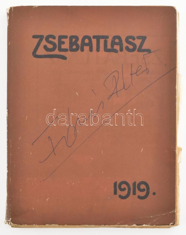 Zsebatlasz naptárral és statisztikai adatokkal az 1919. évre. Szerk.: Dr. Bátky Zsigmond. Bp., 1918, Magyar Földrajzi Intézet Rt., 128 p.+ 8 t.+ 6 melléklet. Kiadói papÃrkötés, kissé sérült, tulajdonosi névbejegyzésekkel.