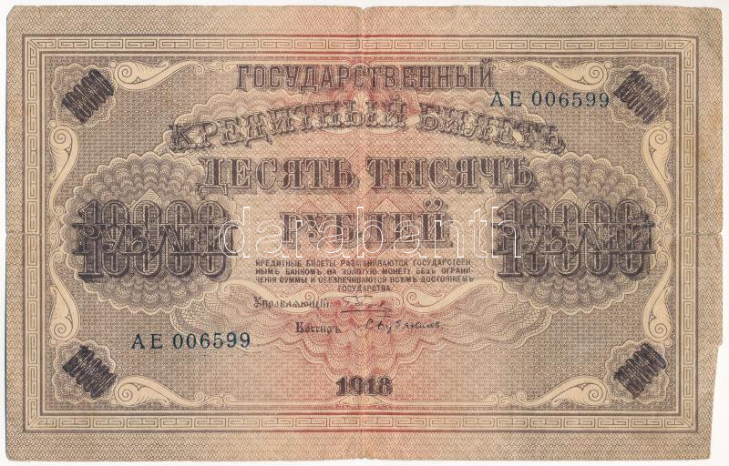 Szocialista Szövetségi Szovjet Köztársaság 1918. 10.000R T:VG szakadás, apró lyuk