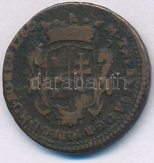 Leírás: 1760. Rézdénár "Mária Terézia / nyílt korona" T:F