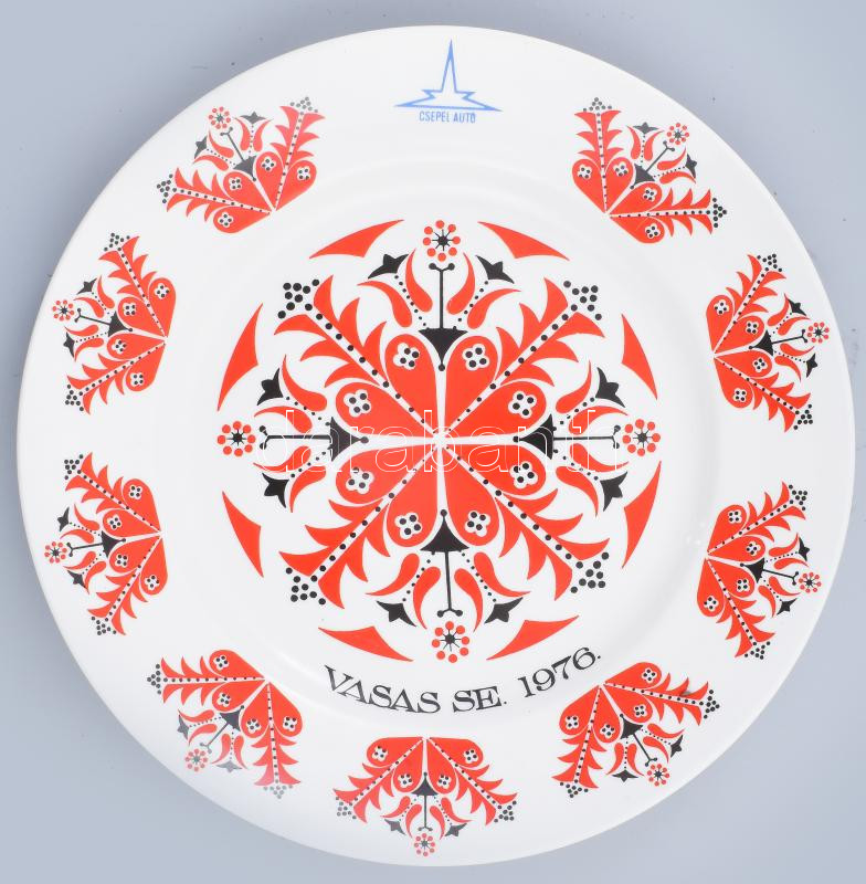 Leírás: Hollóházi dísztál "Vasas SE 1976" felirattal. Jelzett, hibátlan, d: 24 cm