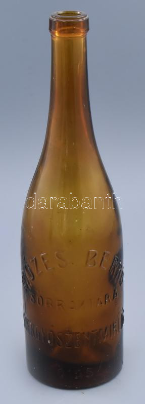 Leírás: Mózes Berkó Sörraktára, Gyergyószentmiklós feliratos sörösüveg, 0.55l, sérült, m: 28,5 cm