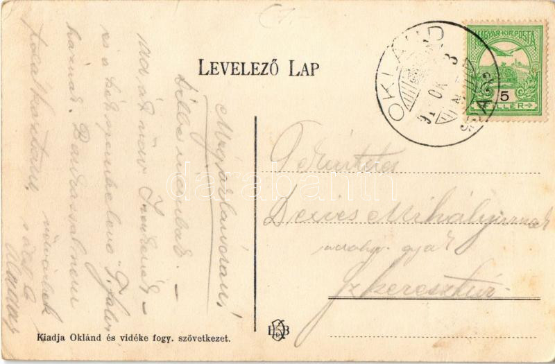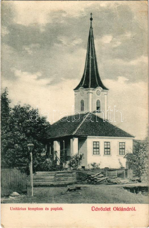Oklánd, Homoródoklánd, Ocland; Unitárius templom és paplak. Oklánd és vidéke fogyasztási szövetkezet kiadása / Unitarian church (EK)