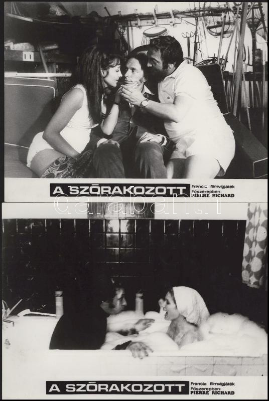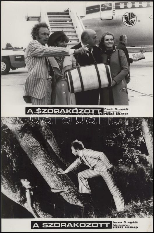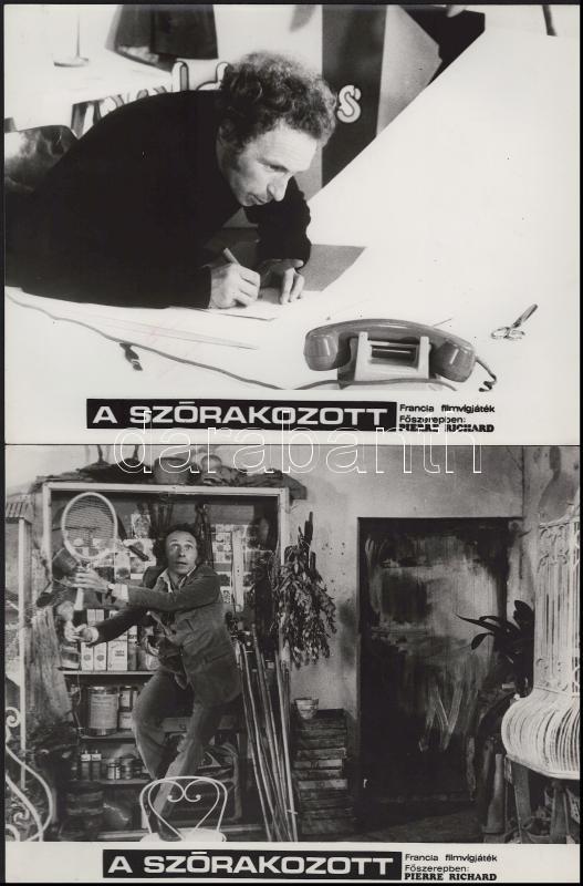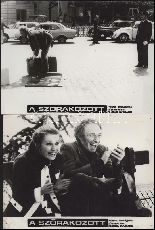 Pierre Richard főszereplésével készült film (A szórakozott) jelenetei és szereplői, 11 db vintage produkciós filmfotó (vitrinfotó, lobbyfotó) ezüst zselatinos fotópapíron, a használatból eredő (esetleges) kisebb hibákkal, 18x24 cm