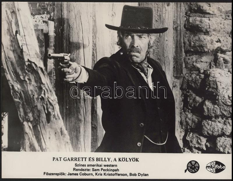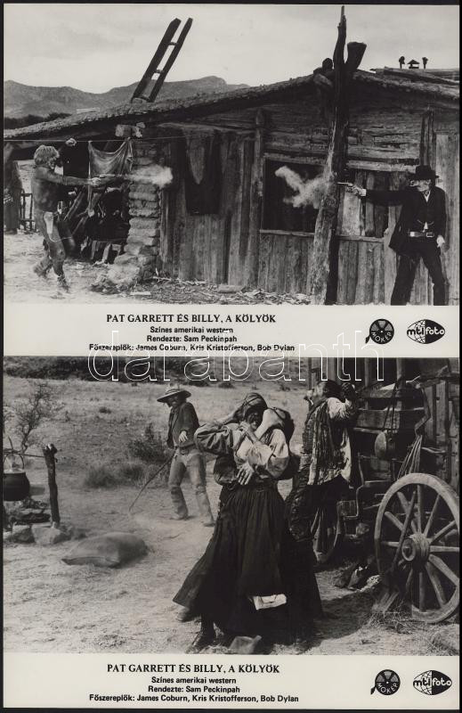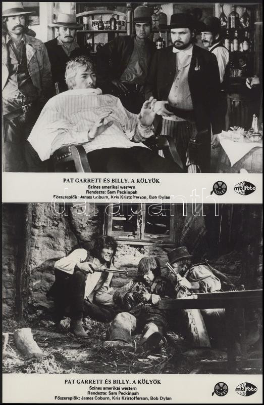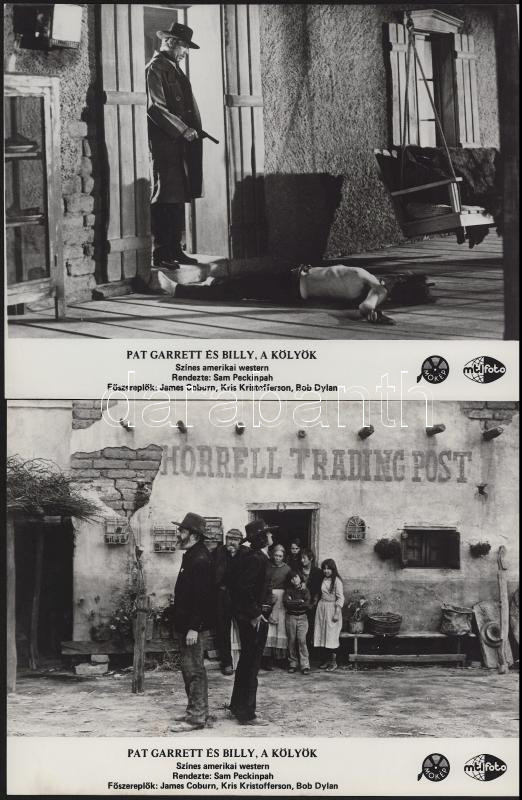 cca 1989 előtt készült, "Pat Garrett és Billy, a kölyök" című film jelenetei és szereplői, 7 db vintage produkciós filmfotó (vitrinfotó, lobbyfotó) ezüst zselatinos fotópapíron, a használatból eredő (esetleges) kisebb hibákkal, 18x24 cm