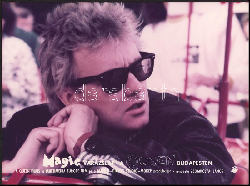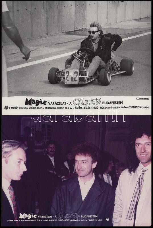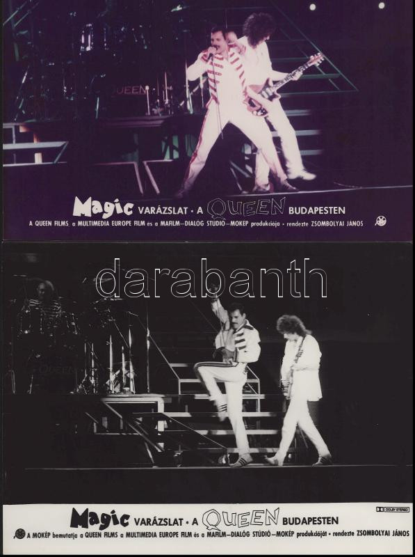 Zsombolyai János rendezésében készült film (Magic varázslat - a Queen Budapesten) jelenetei és szereplői, 5 db vintage produkciós filmfotó (vitrinfotó, lobbyfotó) ezüst zselatinos fotópapíron, a használatból és helytelen tárolásból eredő hibákkal, 18x24 cm