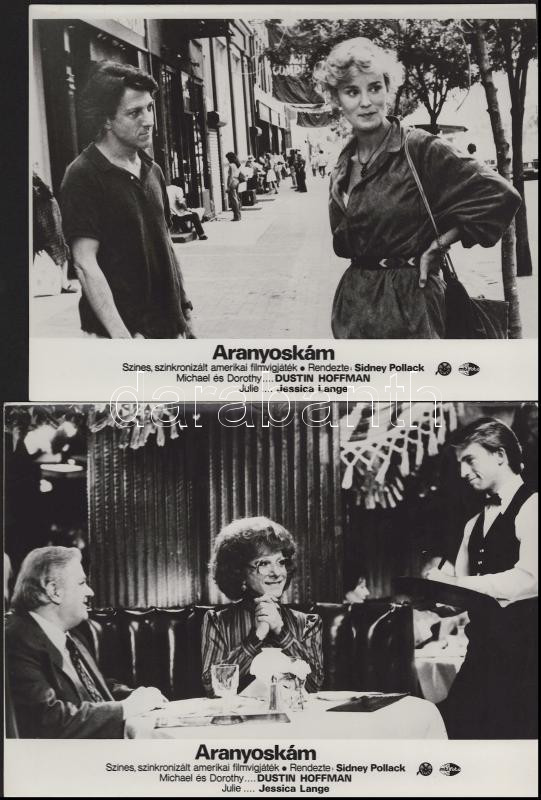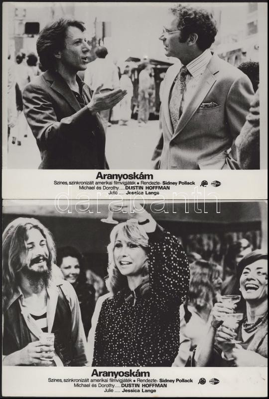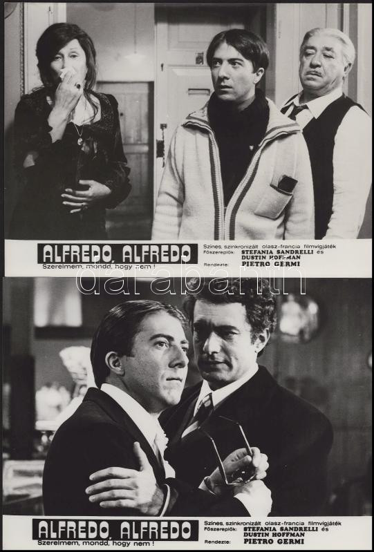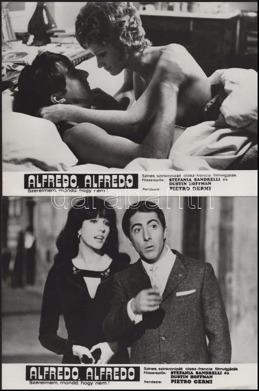 Dustin Hoffman főszereplésével készült filmek (Aranyoskám; Alfredo, Alfredo) jelenetei és szereplői, 13 db vintage produkciós filmfotó (vitrinfotó, lobbyfotó) ezüst zselatinos fotópapíron, a használatból eredő (esetleges) kisebb hibákkal, 18x24 cm