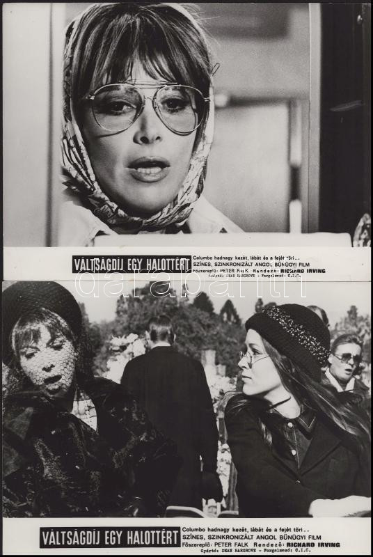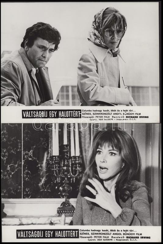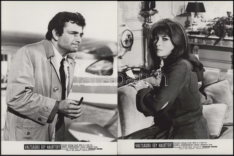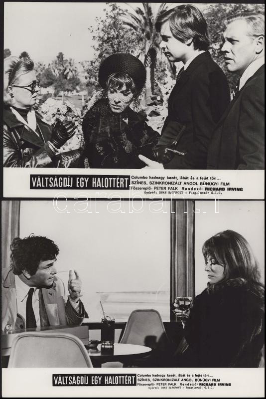 Peter Falk főszereplésével készült film (Váltságdíj egy halottért) jelenetei és szereplői, 13 db vintage produkciós filmfotó (vitrinfotó, lobbyfotó) ezüst zselatinos fotópapíron, a használatból eredő (esetleges) kisebb hibákkal, 18x24 cm